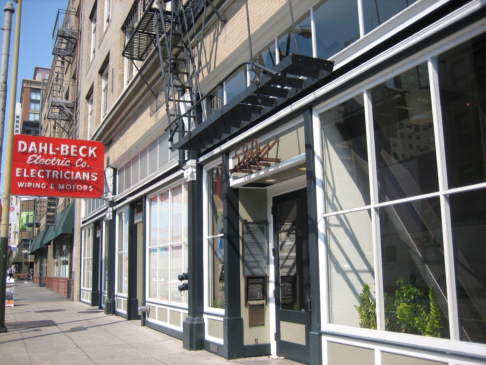 Built in 1906, from out of the ashes of the San Francisco earthquake and fire, the Dahl-Beck is listed on the National Register as a contributor to the Second and Howard Streets Historic District. The historic façade includes light tan brick, operable double-pane sash windows and heavy galvanized iron cornice with modillion blocks. The original red neon blade sign was refurbished and still lights up the facade at night.
